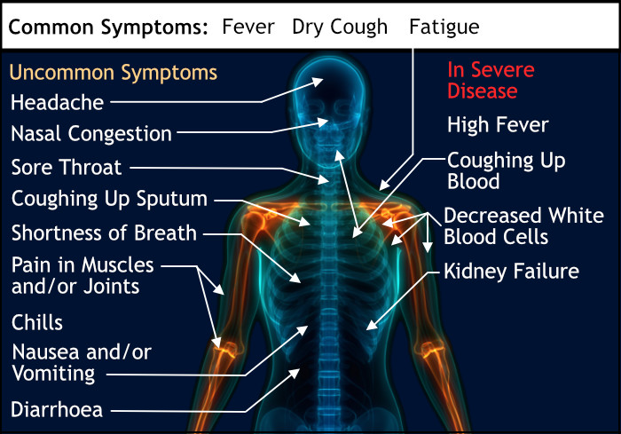 The illustration below is an overview of the symptoms associated with COVID 19.